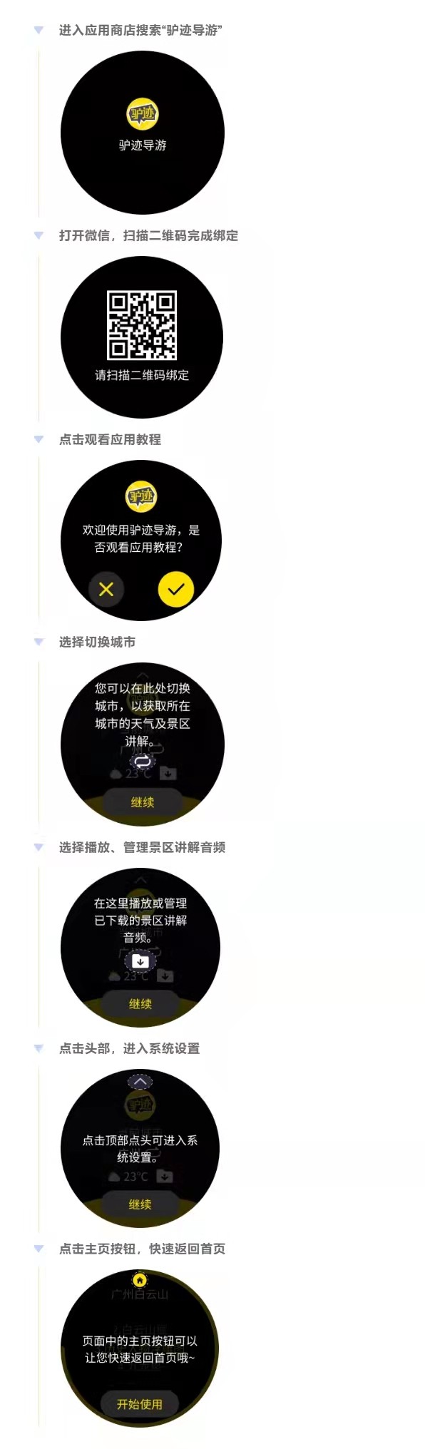 通过驴迹导游应用听景区的导游讲解,用户可以在前往目的地的路上事先了解景区历史文化故事,真正做到深度游、趣味游。 驴迹导游手表版应用拥有以下亮点功能: