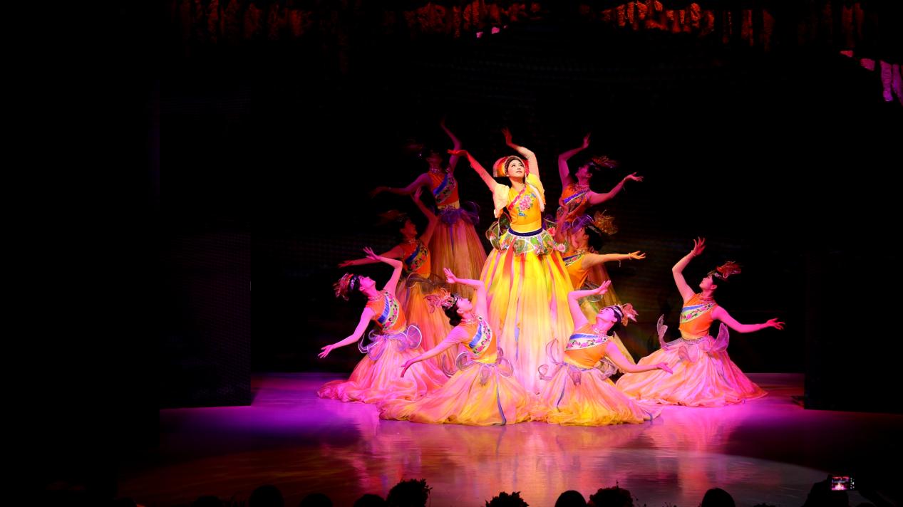 洞中有华丽的演出剧场,近半个小时的歌舞表演,让我们对金梭岛居民的生活和爱情有进一步了解,正如在白族文化中,对女士称呼为“金花”,男士称呼为“阿鹏”。1959年电影《五朵金花》,是一部关于云南大理风光及白族青年幸福相爱的经典,可以说影响了好几代人,我也是最早从这部电影向往大理的。