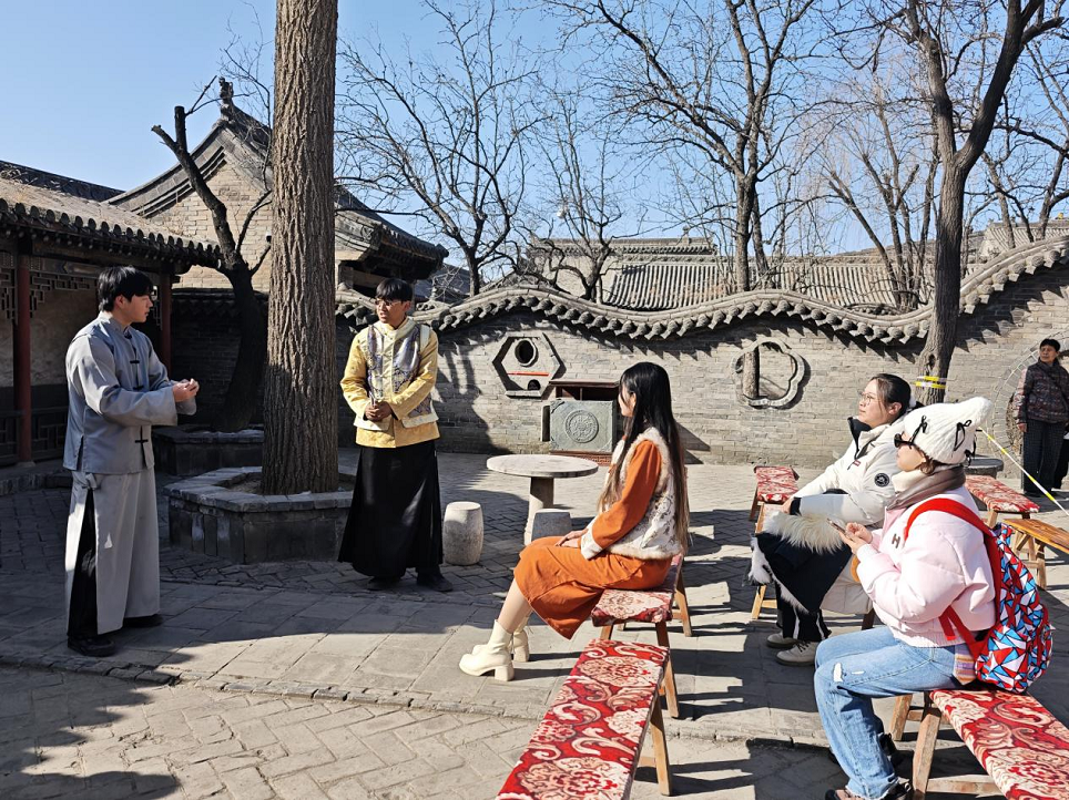 新春的王家大院,不止于视觉的赏鉴,更在于沉浸式的体验。NPC古装伴游穿梭院落,让游客仿佛穿越至明清晋商盛世,与掌柜、丫鬟、镖师的互动对话,让晋商的经营智慧、家族传承变得可感可触。晋商主题剧本杀、非遗手工体验、茶香满院的茶舍,将古建筑的静态之美,转化为动态的文化体验,让游客在触摸古建肌理的同时,沉浸式感受原汁原味的晋商年俗,让千年晋商文脉,在新春的互动中得以传承与新生。