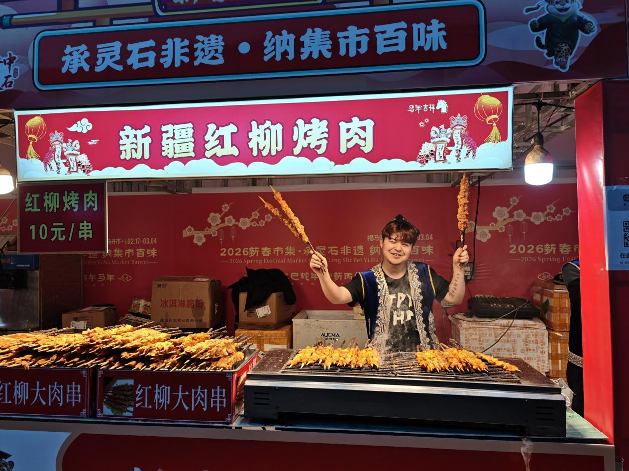 市井烟火,是年味最本真的底色。非遗市集里,灵石本土的油糕、碗托醇香四溢,新疆烤肉的孜然、铁板鱿鱼的焦香、烤年糕的甜糯交织碰撞,五湖四海的年味在此汇聚。孩子们举着烤肠嬉笑,大人们捧着热饮闲谈,传统匠心与人间烟火在此相融,晋风古韵与新潮热闹在此共生。这份混搭的年味,既有文化根脉的坚守,也有包容四海的鲜活,让每个人都能在市集的烟火中,找到属于自己的新春欢愉。